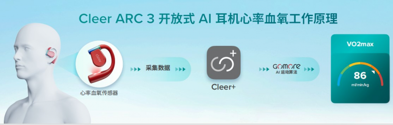 What's even more unique is that the Cleer ARC 3 Sound Arc provides more than just heart rate and blood oxygen monitoring functions for health care. It also works closely with GoMore, the world's top sports science and AI intelligent coaching service provider, to equip the ARC 3 Sound Arc Open AI Earphone Sport Pro with a complete set of professional level exercise physiology algorithms. It can provide personalized heart rate ranges, key aerobic indicators, energy consumption, training analysis, real-time status, advanced running indicators, and a series of comprehensive analyses in real time according to the user's age, health status, and exercise habits.